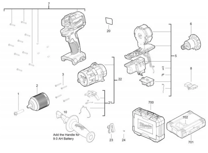 We supply a wide range of spare parts for the percussion drill on our website, including: screw, chuck, housing, rotor, electronic switch, auxillary handle, rating plate, adj button, gear box and hook.
